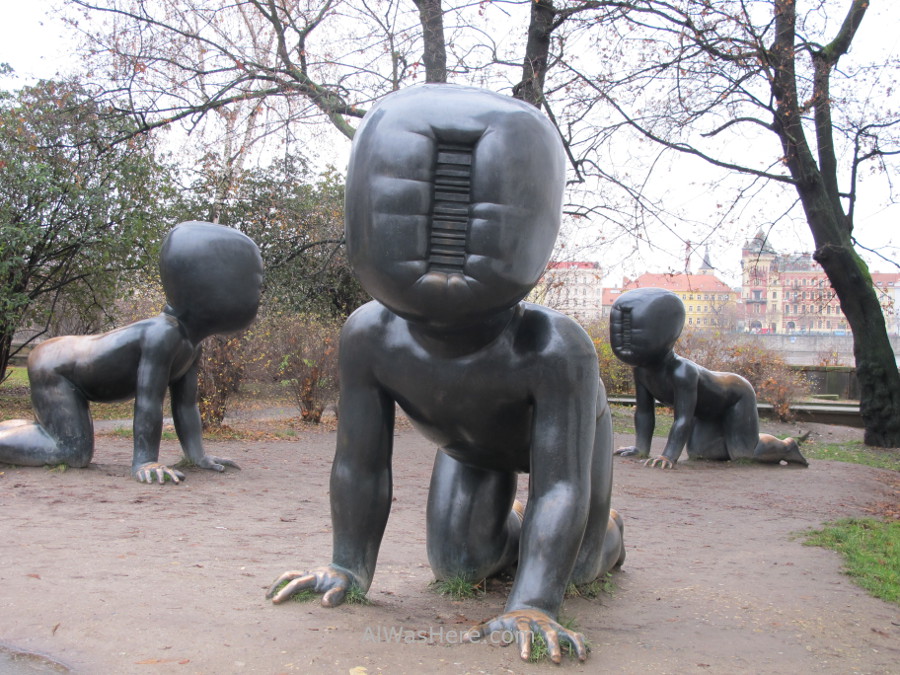 En el lado sur del Puente de Carlos, a la orilla del río, está el Museo Kampa de arte moderno. Abierto diariamente de 10 am a 6 pm. Entrada de adulto 330 CZK, aunque se pueden visitar secciones individuales pagando cada una de ellas. No he entrado en el museo, pero muchas de sus obras están expuestas al aire libre en los alrededores del parque donde está situado, y lo cierto es que, para no ser amante del arte moderno, las que he visto me gustan. Los más famosos son unas esculturas de bebés pseudoalienígenas gateando (Crawling Babies) del mismo autor que la del museo Kafka, y personalmente me encanta la fila de pingüinos amarillos.
