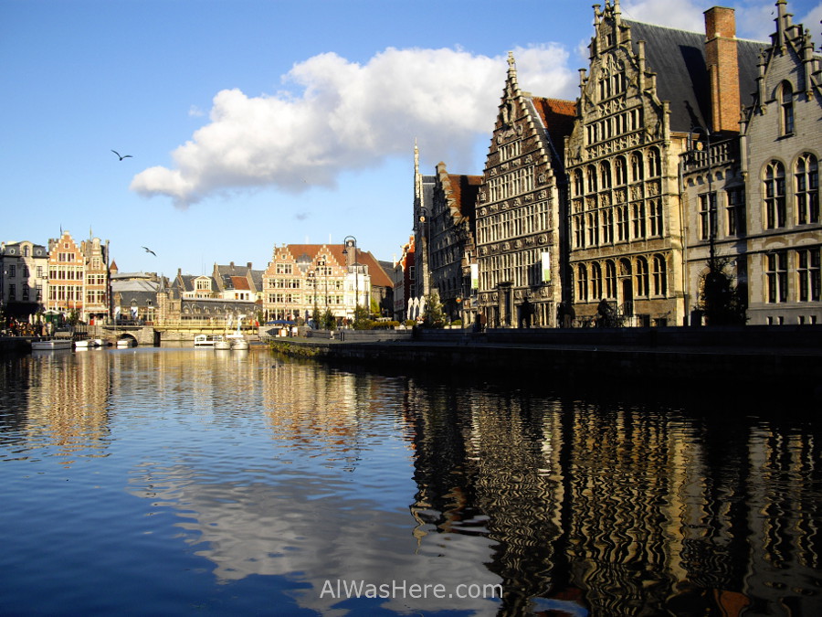 • El canal principal de Gante es en mi opinión el más bonito y grandioso de Bélgica y uno de los mejores de Europa. Su amplitud permite una magnífica imagen al reflejar los edificios.